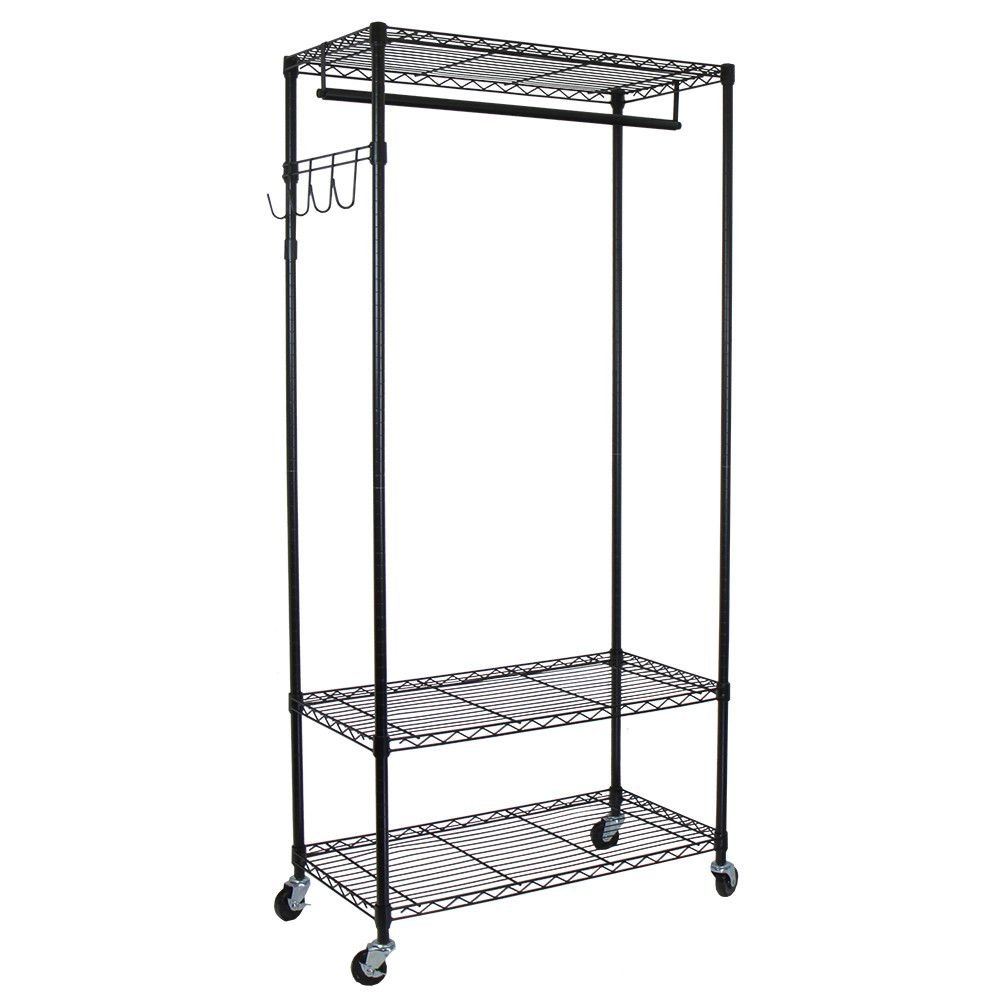 Be instantly free of clutter with the all-in-one solution to your storage needs! Constructed with heavy duty steel, the Oceanstar Garment Rack is not only easy to assemble, but sturdy enough to hold heavy garment pieces such as winter wear, gowns, handbags, and footwear, which can all be neatly organized and easily accessible from this one rack. It features 3 height adjustable shelves for extra storage capacity and a detachable hanging bar that easily accommodates to the length and size of your garments. Arrange your handbags onto the removable hook bracket at the desired height. With 4 heavy duty caster wheels for easy transportation, the rack moves effortlessly to anywhere in the home. The Oceanstar Garment Rack not only provides additional storage space but caters specifically to your storage requirements. It is the ideal addition to your home and bath environment.