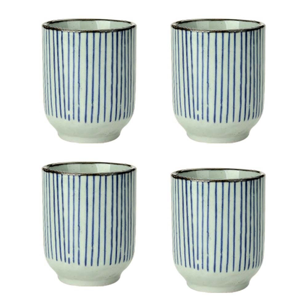 Home > 4Pcs Japanese Style Blue Stripe Ceramic Teacups Small Straight Wine Glass 150ML