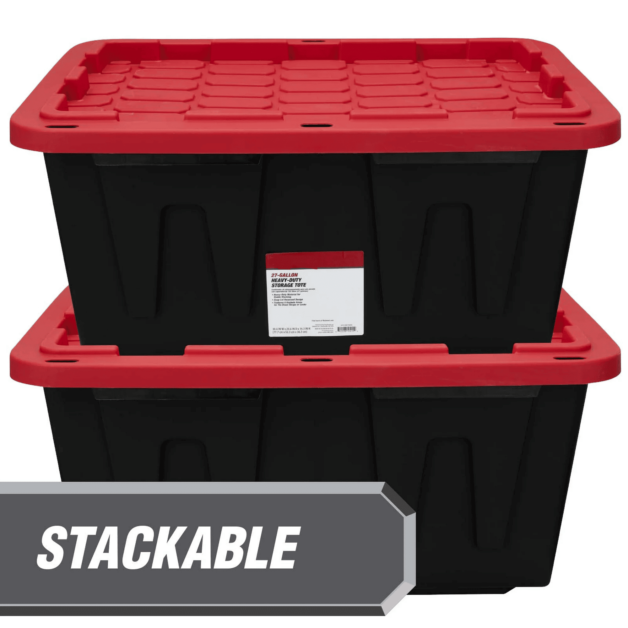 Home > Large Storage Bin, 27 Gallon Plastic Storage Container with Snap-On Lid, Black and Red 4Pack