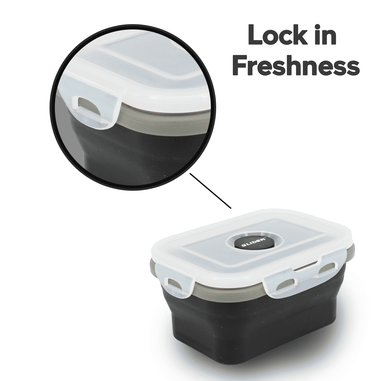 Glider Collapsible Bento Box Set are stylish and leak-proof silicone storage container set features breathable valve design, perfect silicone food container set for indoor food storage, outdoor activity, such as work, camping, hiking, travel and more. With a stylish collapsible design can carry more lunch needs. This storage container set is easy to unfold to create more space. This Lunch Box is BPA Safe, Microwave safe without lid and dishwasher safe.Glider snap on lids create an airtight vacuum seal that will keep your food secured and fresher longer. Featuring an air vent for microwave heating and four convenient sizes, this versatile set is the perfect solution for your different food storage needs.X-Large - Size;8.66x5.59x3.07inch/1.37inch Volume:1200mlLarge - Size:7.48X4.92X2.91/1.33 Inch Volume: 800ml,Medium - Size : 6.61x4.33x2.55/1.18Inch Volume: 450mlSmall - Size: 5.30X3.93X2.55Inch /1.18 Inch Volume: 350ml