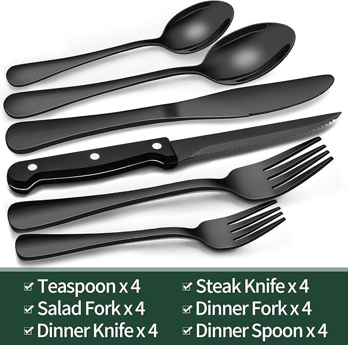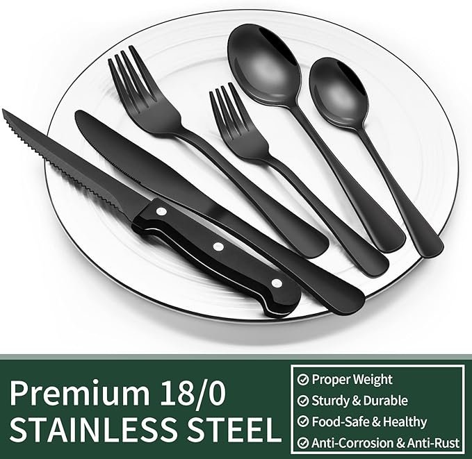 24-Piece  Silverware Set with Steak Knives Steel Tableware Cutlery Set 24-Piece  Silverware Set with Steak Knives Steel Tableware Cutlery Set 24-Piece  Silverware Set with Steak Knives Steel Tableware Cutlery Set