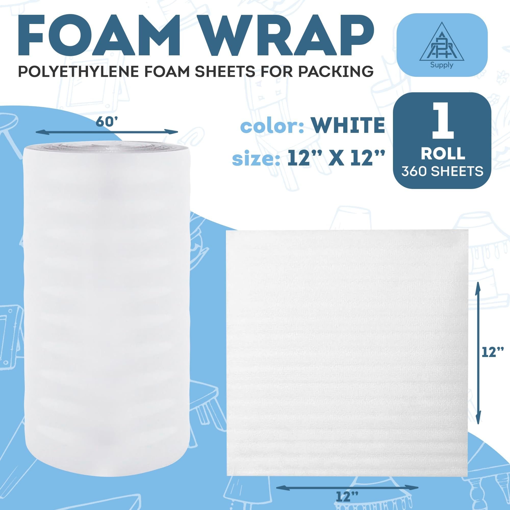 White Foam Wrap Roll for Packing 1 Roll of 12 Inch x 60 Feet. 360 Pack of 12 x 12 Inch Polyethylene Foam Sheets for Packing. Reusable Packing Foam Rol White Foam Wrap Roll for Packing 1 Roll of 12 Inch x 60 Feet. 360 Pack of 12 x 12 Inch Polyethylene Foam Sheets for Packing. Reusable Packing Foam Rol White Foam Wrap Roll for Packing 1 Roll of 12 Inch x 60 Feet. 360 Pack of 12 x 12 Inch Polyethylene Foam Sheets for Packing. Reusable Packing Foam Rol